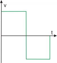 Der Körper bewegt sich erst langsam, steht dann eine Zeit und bewegt sich zum Schluss schnell.